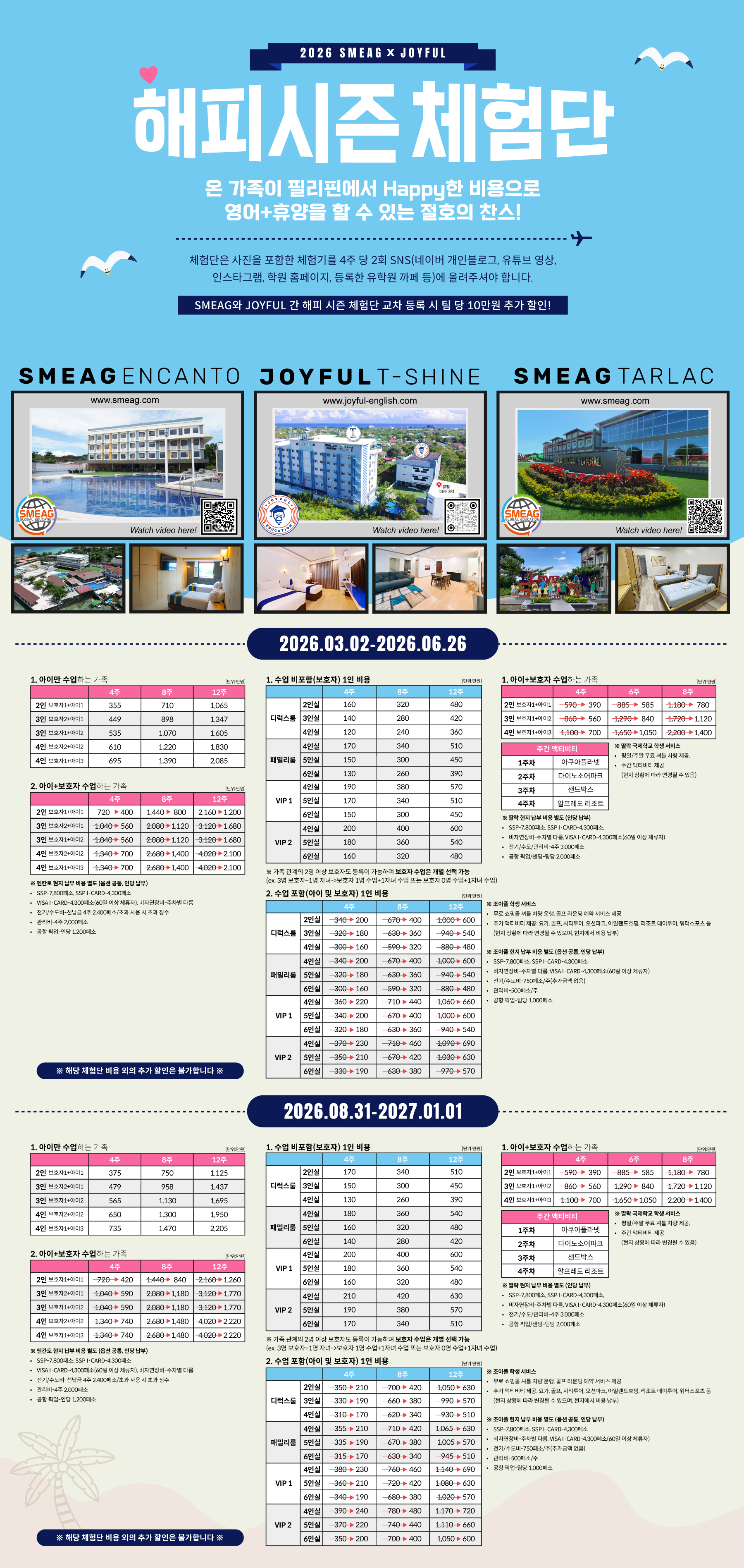 - 2022년 신축한 호텔을 숙소로 사용- 호텔 서비스 제공- 가족연수에 최적화- 수영장+헬스장+마사지샵+루프탑 레스토랑 등의